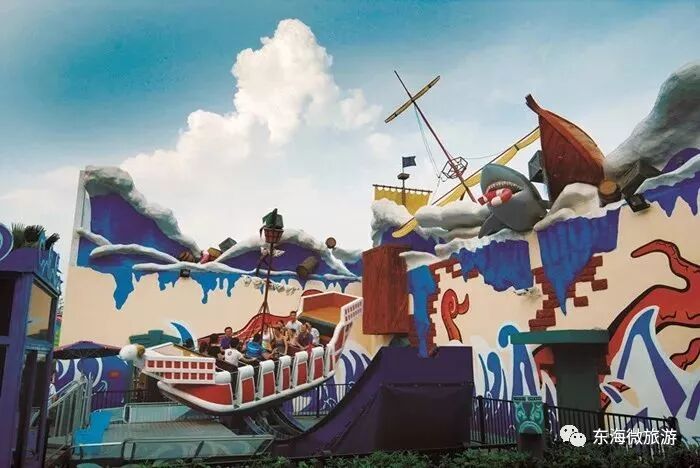 一艘海盗船,可以四个方向转,灵活的变换方向,海盗船更像是一个摇篮,刺激需要前奏,巅峰需要铺垫,“海盗王号”适合刚入园游玩,是小朋友的最爱。