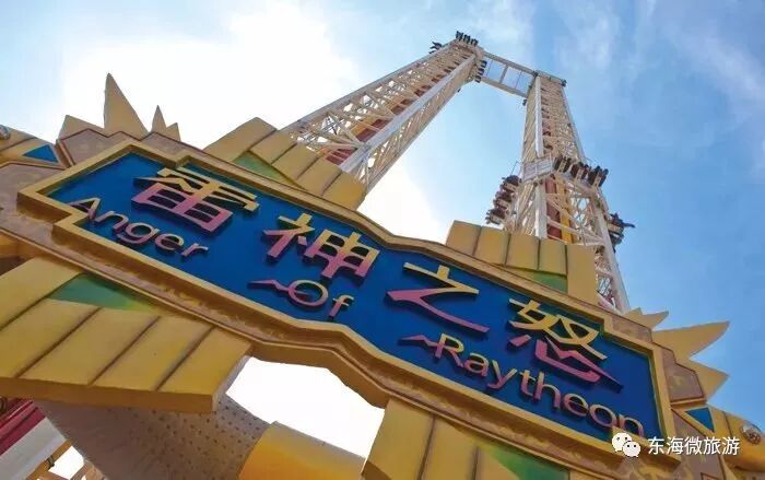 雷神之怒刺激指数:★★★★★高耸矗立,急速升降,尖叫不断。伴随位置的急速变化,刺激到爆。雷神之怒高约60米,每塔可以乘坐12位游客,运行时最高时速约达每小时72千米。整个项目运行时间大约为60秒。雷神发怒的后果,可不是一般法力所能抗衡的。你一定会感受到飞入云霄般的刺激!